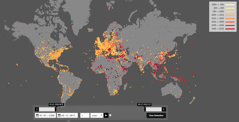 Функціонал сайту дозволяє обирати як сталі періоди (наприклад, залізне століття), так і хронологічні рамки, які цікавлять саме вас (на стрічці часу внизу сторінки сайту можна обрати проміжок часу, вказавши конкретні роки).