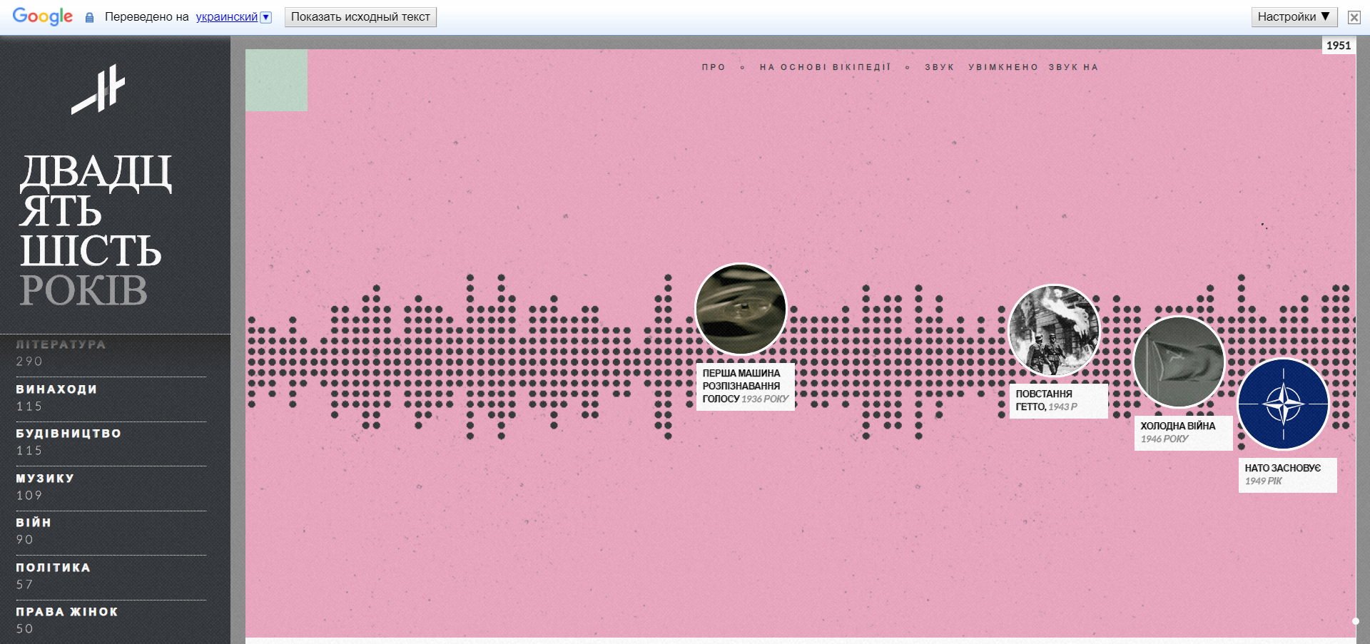 Battles – інтерактивна карта світу, на якій зібрані всі задокументовані битви та військові конфлікти, які відбулися в історії людства.